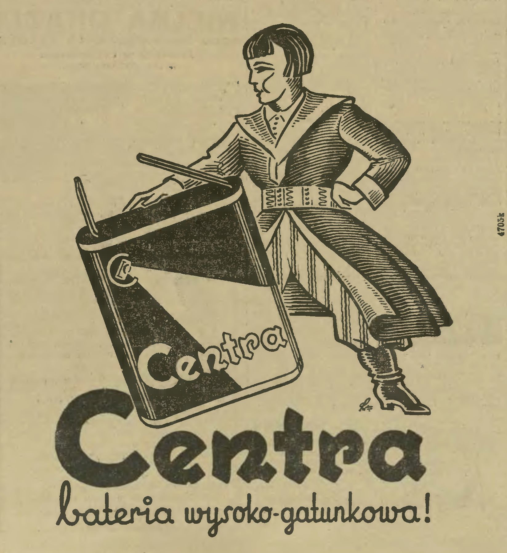 Reklama baterii „Centra” OpisReklama baterii "Centra". Licencja / źródło Ilustrowany Kuryer Codzienny. 1939, nr 230 (21 VIII), POLONA, wolna licencja (CC-BY - Uznanie autorstwa 3.0 Polska) Plik podchodzi z e-kartki z dnia 21.09.1939