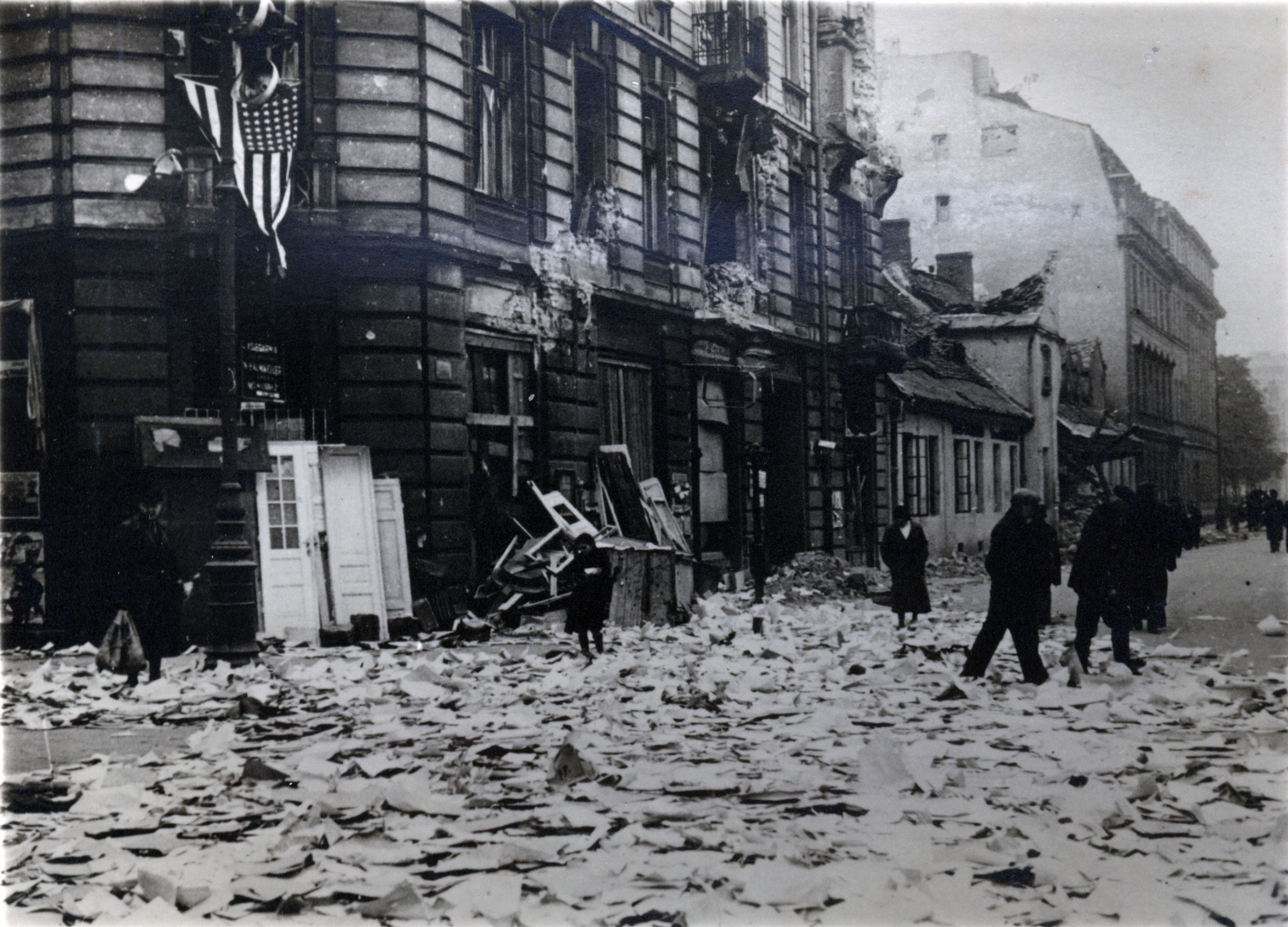 Zbombardowany konsulat amerykański na rogu ulic Jasnej i Świętokrzyskiej