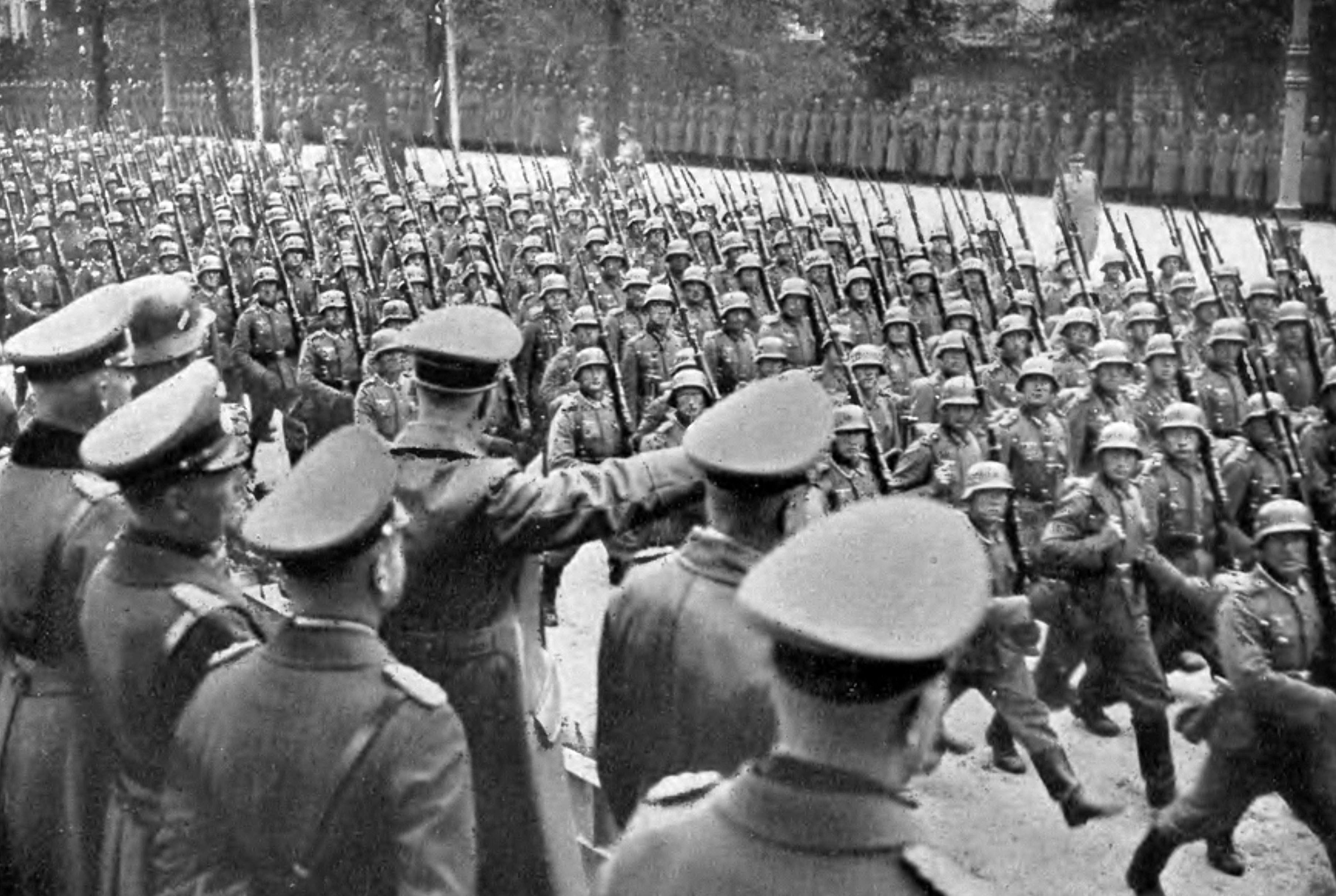 Defilada wojsk niemieckich OpisHitler podczas defilady wojsk niemieckich. 5 października 1939. Licencja / źródło Album "Mit Hitler in Polen" (1939), www.archive.org, wolna domena Plik podchodzi z e-kartki z dnia 05.10.1939