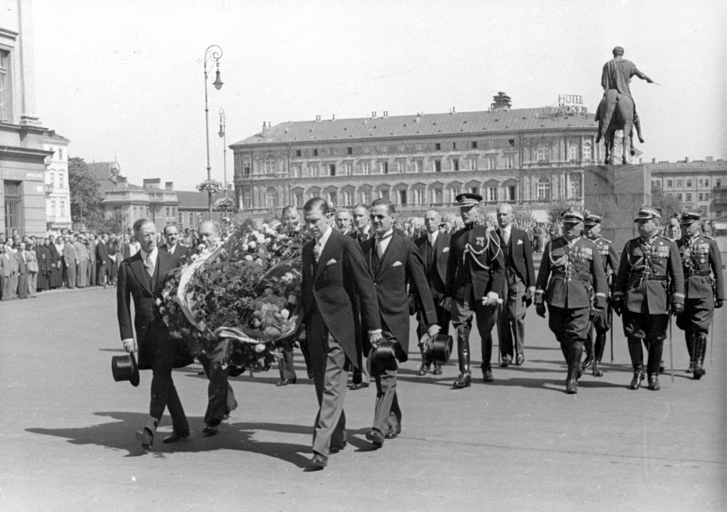 23 sierpnia 1939 Uroczystość wręczenia prezydentowi RP Ignacemu Mościckiemu sztandarów amerykańskich przez ambasadora Stanów Zjednoczonych w Polsce Anthonego Drexel-Biddle. Składanie wieńca na Grobie Nieznanego Żołnierza przez ambasadora Stanów Zjednoczonych w Polsce Anthonego Drexel-Biddle.