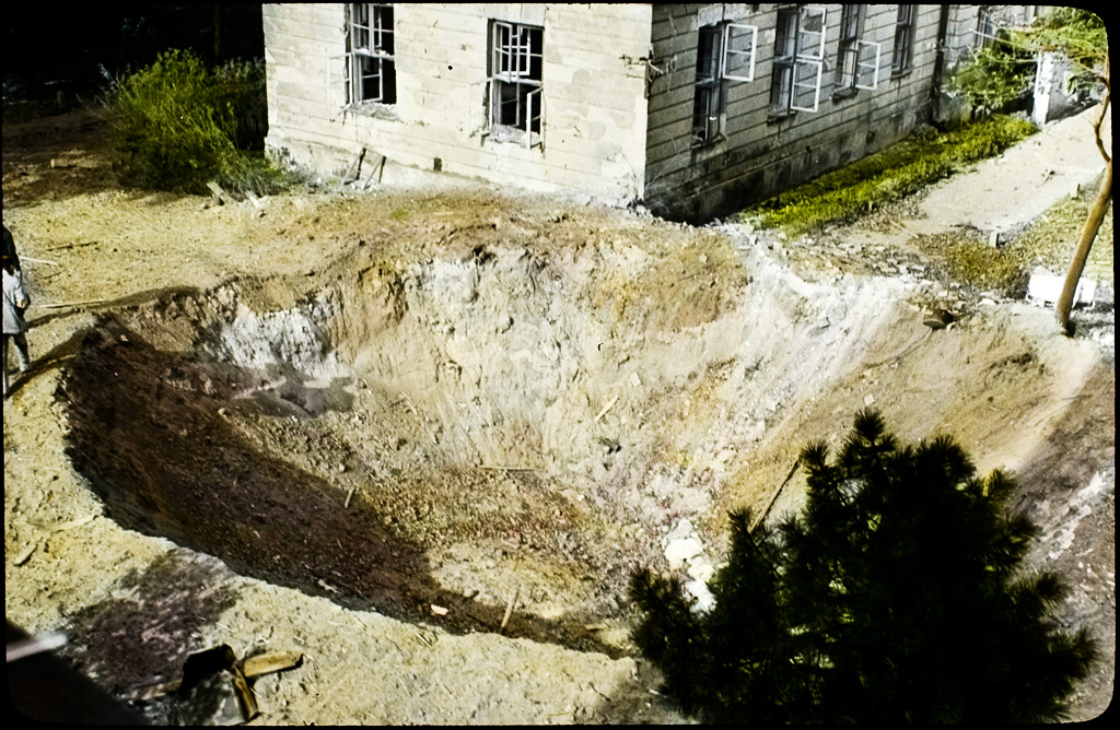 Pojechaliśmy do dopiero co zbombardowanego wielkiego szpitala pw. Przemienienia Pańskiego. Pięć bomb o wadze 250 kilogramów spadło na budynki szpitala i jego teren, pozostawiając leje o średnicy od dziewięciu do dziesięciu i pół metra . Oczywiście, pacjenci byli w stanie histerii, a w szpitalu panowało straszliwe zamieszanie. Ale lekarze i pielęgniarki zawsze byli na swoich stanowiskach.